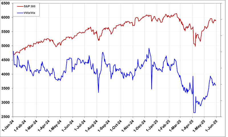 Finalmente, examinamos la relación VVIX/VIX: