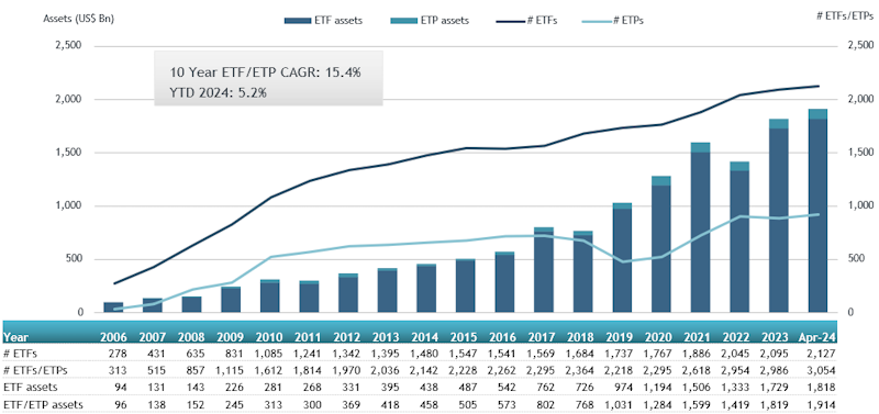 Europe ETFs and ETPs asset growth as at the end of April 2024