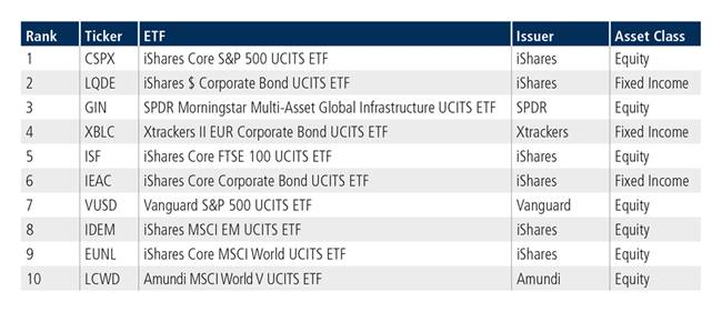 Seven of the top ten spots were occupied by equity-based products in February, and three of these offer investor exposure to global stocks. But, it was a U.S. equity-focused fund that topped the table, the iShares Core S&P 500 UCITS ETF, which took the first spot for the second consecutive month.